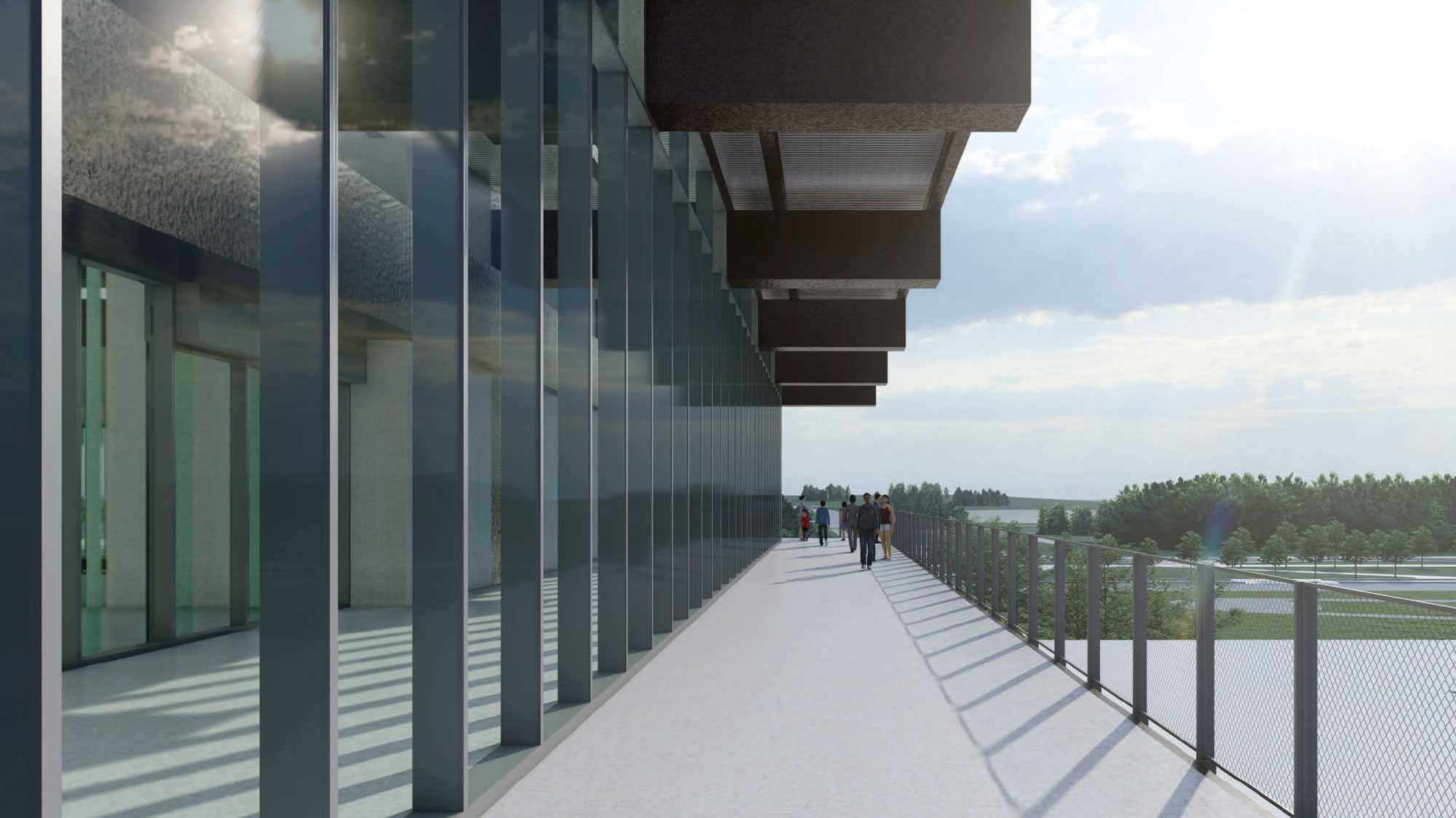 전시 파사드를 실현하기 위한 장치도 고민이 필요했다. 알레한드로 자에라 폴로가 처음 제안했던 대로 큐레이션에 의해 지속적인 변화와 성장이 가능한 전시를 구현하기 위함이다. 테라스가 2, 3층에 걸쳐 만들어지는데 공모 당시 더 넓은 테라스였지만 공사비와 면적 등의 문제로 최소한으로 줄어 전시물을 두고 교행할 수 있는 정도의 약 4m 폭이 되었다. 발코니 하단에는 앵커볼트를 규칙적으로 설치하고, 상단에는 미리 시공한 앵커볼트에 클램프나 케이블 등이 목업 전시품을 수직으로 잡아주어 고정한다. 상시로 목업 전시품을 테라스로 올릴 것을 염두에 두어 테라스 슬래브의 하중 값을 계산해 카고 크레인이 움직일 수 있도록 바닥 페이빙까지 디자인하고, 전시품을 발코니에 들일 수 있도록 난간은 탈부착이 가능하도록 했다.