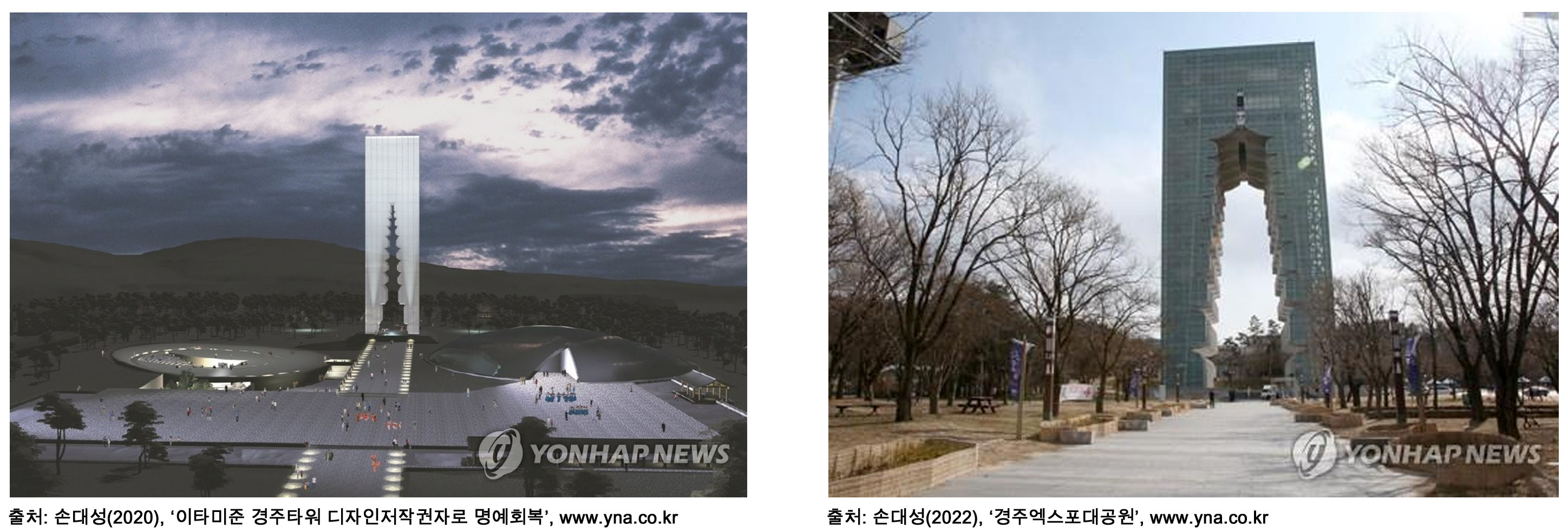 저작권 관련된 공부를 하면서 처음 살펴본 사례가 2004년 경주 엑스포를 기념하는 랜드마크 공모전이다. 한 작업이 당선이 아닌 우수상을 탔는데, 5년 뒤에 우수상과 비슷한 랜드마크가 완공됐다. 그래서 소송을 하는데, 2011년 대법원에서 지자체의 상고를 기각하며 원작자가 이긴다. (1심은 패했다. 그런데 2심에서 소송에 제출한 문서 중에 우연히 제출안 중 상당히 유사한 안이 있으니 법률 자문을 구하라는 문서가 있었다. 이 문구로 인해 소송이 뒤집혀 2심에서 원고가 다행히 승소한다.) 행복한 결말 같지만, 뒷면의 이야기에서는 건축계를 다루는 다른 사회의 또 다른 태도를 볼 수 있다. 저작권 원고는 이타미 준인데, 상고 기각 결정이 나기 1년 전에 작고했다. 장녀분이 소송을 이어가는데, 승소를 했으니 원작자를 밝히라고 법원에서 명령했다. 그런데 앙금이 남아 있었는지 건축물 오른쪽 바닥에 원작자명 표기를 보이지 않게 설치했다. 2019년 장녀가 다시 소송을 제기했다. 이 소는 중간에 각하됐다. 그 사이에 바뀐 지자체장이 제대로 된 명판을 멀쩡하게 설치해서 소를 취하한 것이다. 이 사례가 먼저 떠오른 것은 우대성 소장님이 말한 것처럼 이번 서울링이 표면적으로는 저작권 표절이라는 현상으로 드러났지만, 사실은 건축계가 어떻게 사회와 관계 맺고 있는지, 얽히고설킨 그 산물이라는 생각에서다.