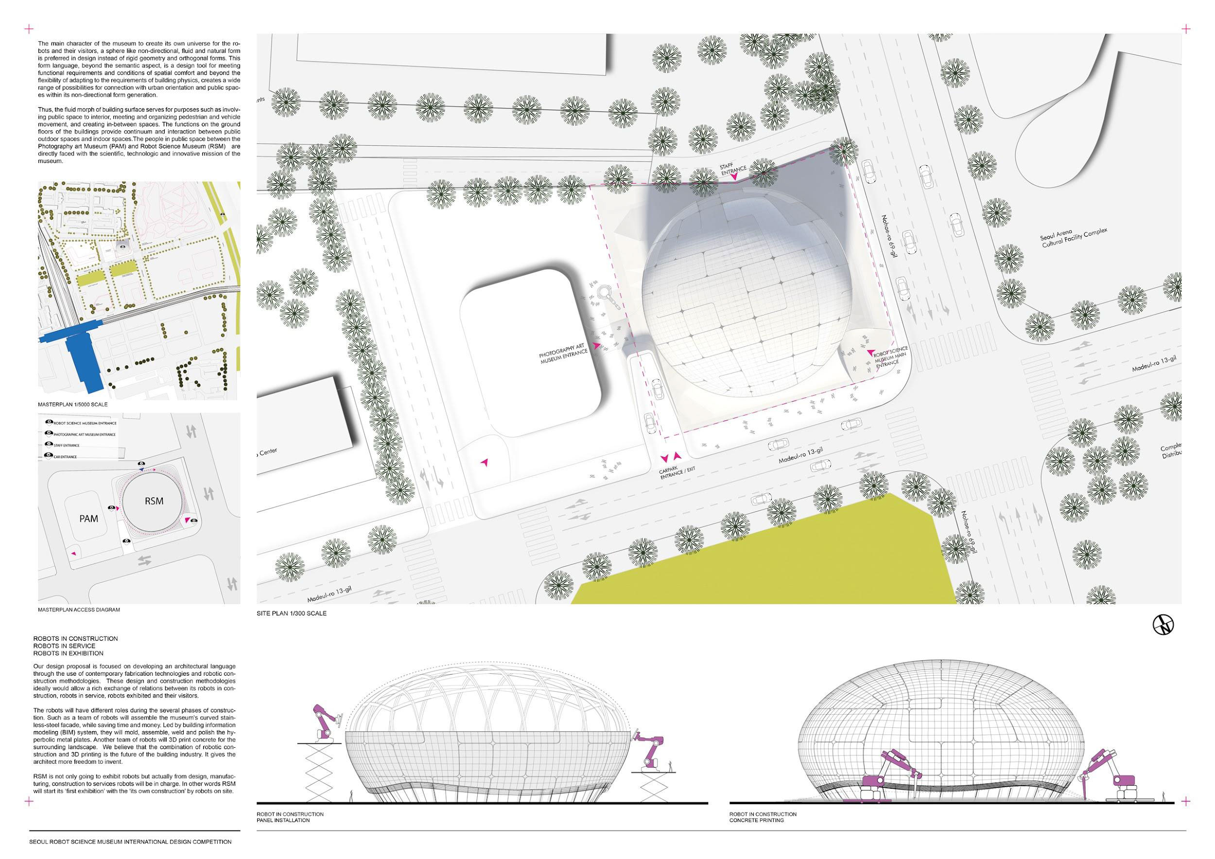 권혁찬  2019년 7월 어느 날 지인으로부터 카카오톡 메시지로 한 장의 투시도를 받았는데, 꼭 찐빵 같은 형태였다. 파사드 구현이 가능하겠냐는 물음에 별로 어려울 것은 없어보인다고 답했다. 그 그림은 그해 2월 서울 로봇과학관 국제 공모전의 당선안으로 터키 건축가 멜리케 알티니시크의 디자인이었다. 관련 기사를 검색해보니 이미 수많은 기사가 인터넷상에 쏟아져 있었다. 건축 과정 전반에 로봇 기술 서비스가 도입된다는 내용이 눈에 띄었다. 설계자 멜리케 알티니식에 대한 수식어도 많았는데, 가장 대표적인 것이 자하 하디드의 수석 디자이너였다는 것이다. 2011년 유럽 40세 이하 젊은 건축가 40인 중 한 명으로 선정되기도 했다.