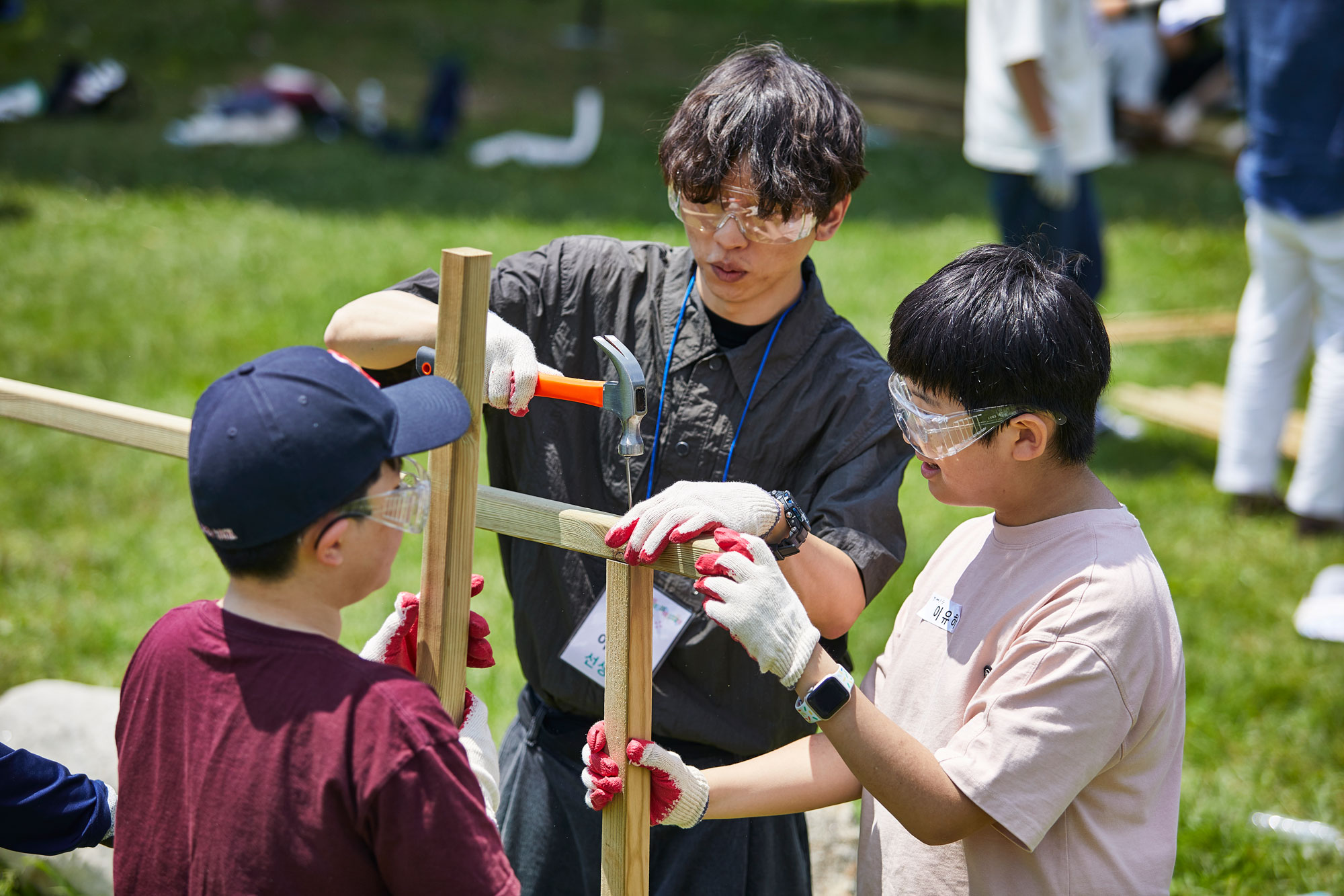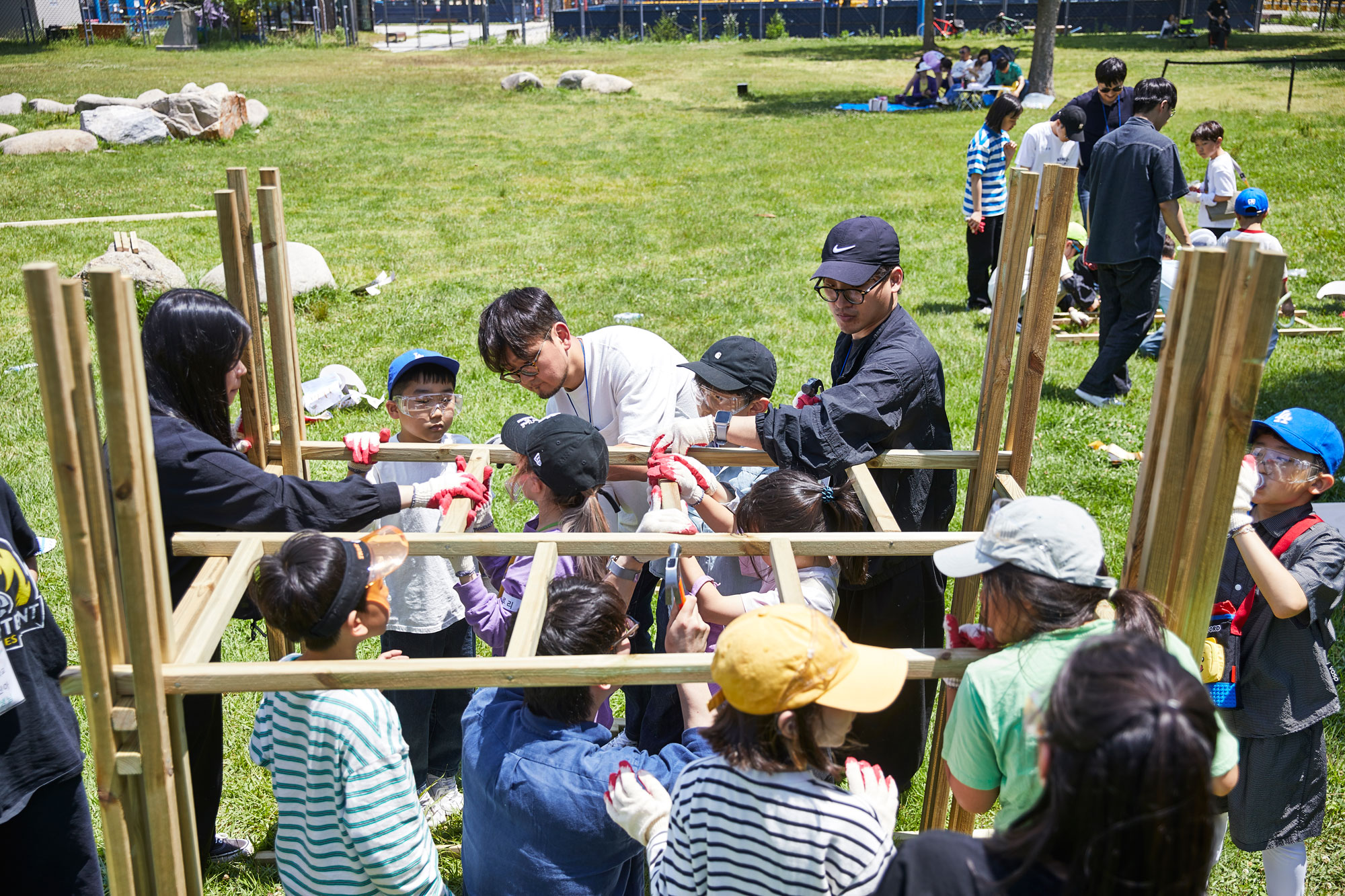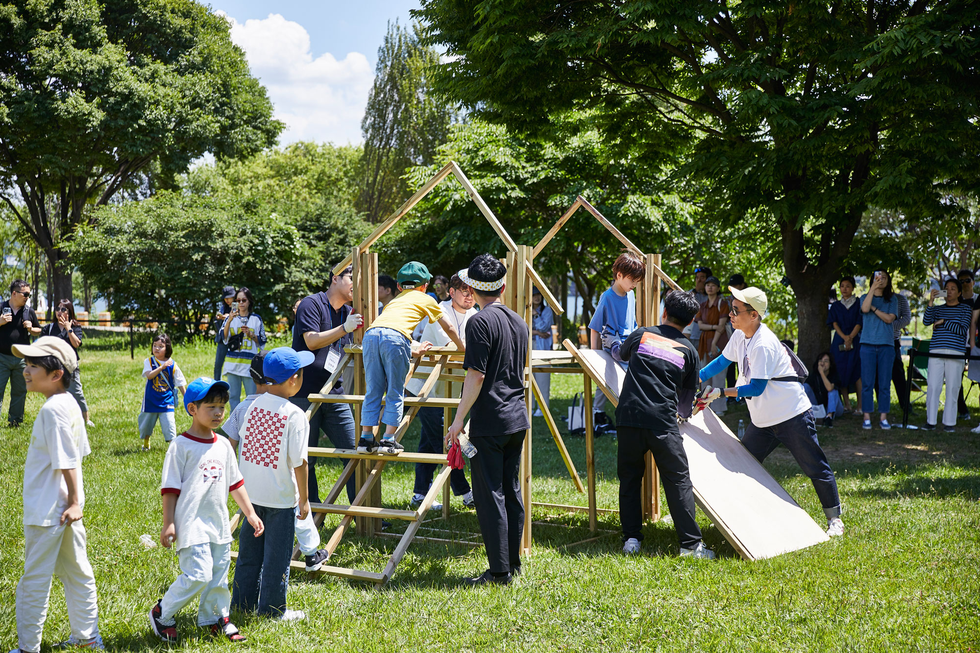 어린이 건축가들이 모둠을 이뤄 실제 목재와 공구를 사용해 아지트를 짓는 야외 수업. 각 조는 기둥, 바닥, 미끄럼틀 등 아지트의 일부분을 맡아 협력 제작하며, 목재 톱질과 못질 등 기본적인 제작 기술도 함께 익혔다. 완성된 구조물은 A, B, C 타입의 아지트로 조립되었고, 아이들은 그 공간을 직접 체험하며 자신이 설계한 공간이 구현되는 과정을 온몸으로 경험했다.