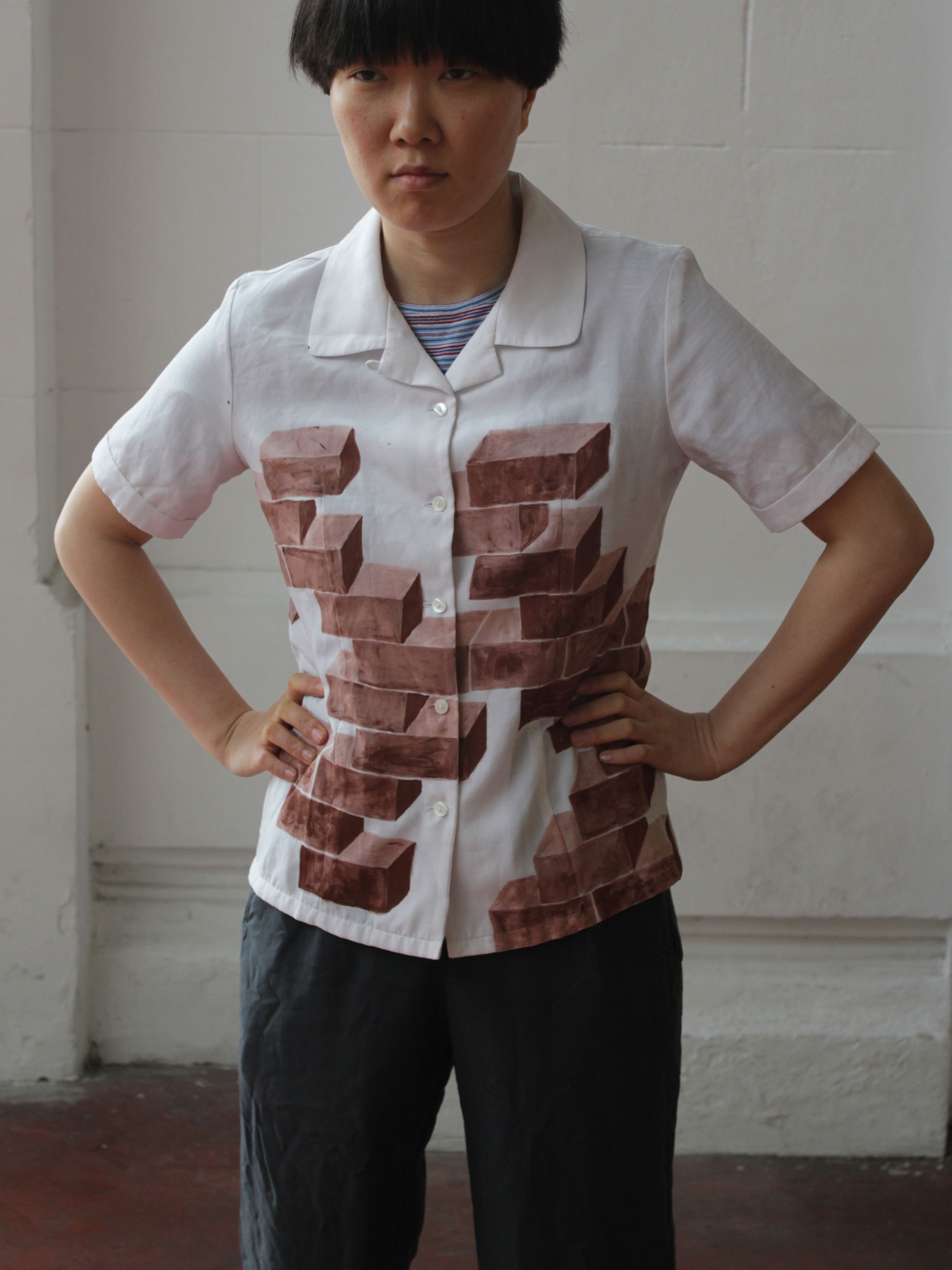 특정 건축물이나 스타 건축가가 만든 건물이 랜드마크가 될 수는 있겠지만, 도시를 구성하는 건 이름 모를 건축가들의 집들이다. 건축가 김수근은 건축을 “빛과 벽돌이 짓는 시”라고 했을 만큼, 적벽돌을 적극적으로 사용했다. 한 시대를 주름잡은 건축가가 가장 대중적이고 보편적인 재료를 사랑했다는 점은 주목할만하다. 내가 적벽돌을 주목하는 이유도 바로 보편성에 있다. 누구나 알지만, 누가 만들었는지 모르는 무명 디자이너의 상품들. 도시에서 살아남기 위해 발버둥 치는 것은 사람뿐만이 아니다. 도시에서 판매되는 대부분의 물건도 자신을 계속 변형시키면서 <신상품>이라는 이름으로 오늘도 경쟁하고 있다. 새로 나온 상품들을 쇼윈도에 전시하기도 바쁜 사이, ‘몸빼’나 삼선슬리퍼처럼 최저의 가격으로 오랫동안 원형을 유지하며 살아남은 물건들이 있는데, 나는 이 물건들을 ‘서바이벌오브젝트’라 부른다. 음식계의 서바이벌오브젝트로는 라면을 들 수 있겠다. 라면은 몸빼처럼 일본에서 건너왔지만, 한국형으로 맵고 싸게 자신을 변형시켜 꾸준히 이 땅에서 사랑받고 있다. 여러 분야의 서바이벌오브젝트가 존재하고 있고 그것을 찾아내는 것이 내가 나에게 낸 숙제 중의 하나인데, 건축계에서 찾은 것은 바로 ‘적벽돌’이었다. 적벽돌을 또 하나의 서바이벌오브젝트로 등록하는 기념으로 만든 적벽돌셔츠를 입고 사진 한 장! 김치~.