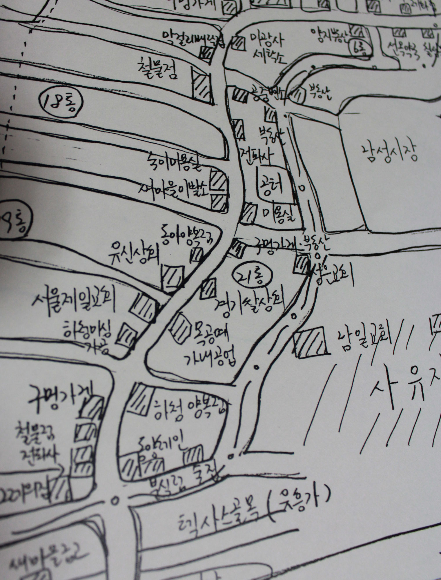 조은 글쎄, 서울이라는 공간의 특수성에 빈곤의 공간을 끌어오는 게 쉽지는 않아요. 많이 이야기 하듯이 서울이라는 공간의 혼종성hybrid은 그 자체가 가진 특수성이죠. 서울은 압축 발전한 한국 사회와 도시의 온갖 특징을 모두 보여주죠. 철거 재개발지역 그리고 빈민들의 공간이 그런 문제들을 집약해서 드러내주는 어떤 공간 중의 하나라고 생각해요. 그런 문제적 공간들을 어떻게 정리해 갈 것인가가 큰 숙제죠. 또 공간을 어떻게 구조화해야 될 것인가에 대한 고민이 필요하겠죠.