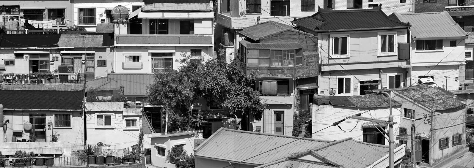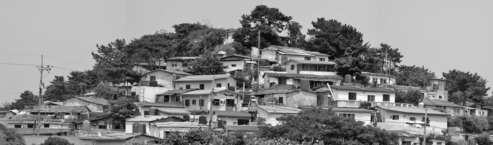 처음 부산의 산동네 사진을 찍으려고 갔을 때 나를 놀라게 한 것은 집과 마을의 다양성과 비좁은 공간을 탁월하게 이용하는 효율성이었다. 예를 들면, 어떻게든 주거 면적을 넓히기 위해 일층보다 이층을 조금 더 넓게 지은 “한 뼘 이층”이라고 부르는 집들이 그런 예의 하나가 될 것이다. 산동네를 구성하고 있는 집들을 생존의 건축, 집짓기의 밑바닥, 건축가 없는 건축, 원초적 건축 따위로 부를 수 있을 것이다. 그리고 좀 더 전문적인 용어로 토속적 건축을 의미하는 버내큘러 건축vernacular architecture의 한 전형이라고 할 수도 있다. 하지만 그런 말들은 산동네의 집과 건물, 계단, 길, 옥상들이 보여주는 경이로운 경관을 표현하는 데는 턱도 없이 모자란다. 아니 애초부터 말로 이를 수 없는 곳에 그 집과 마을이 있다고 보아야 할 것이다.