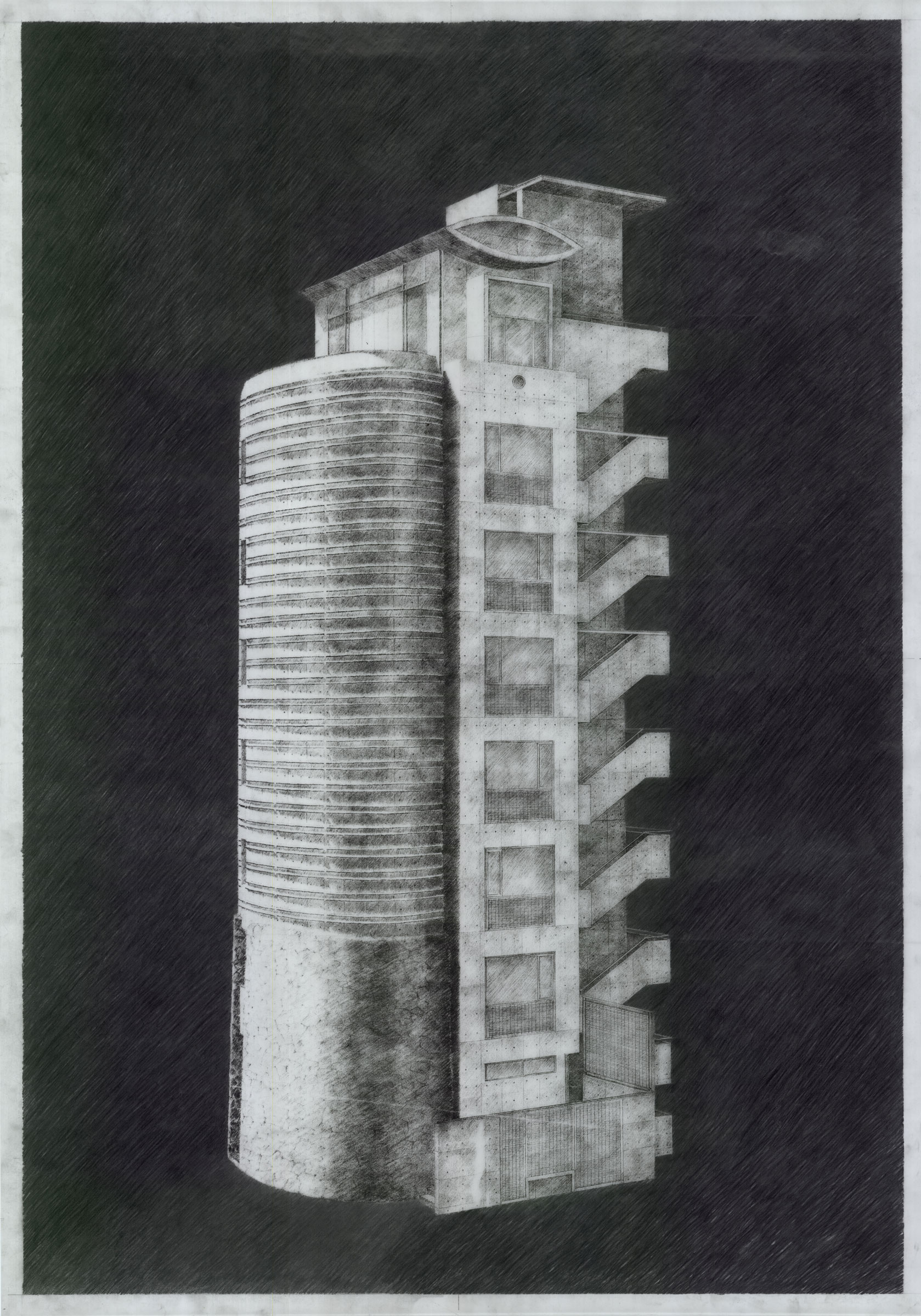 박성태 그래서 사무실 책상은 전체적으로 어두컴컴하고 조명은 설계도를 그리는 손만 비추는 것이군요. 그 자리에서 주로 드로잉을 하셨겠지요? 이번 전시에서 보여주신 드로잉 작업은 그 자체로도 아름답습니다.