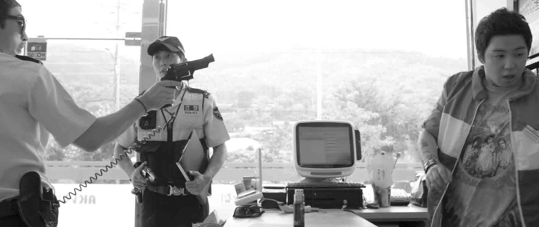 여기에 점주의 사정이 끼어들면 영화가 다루는 이야기의 범위는 편의점 프랜차이즈 구조까지 확장된다. 프랜차이즈 가맹점 점주는 아르바이트생들에게는 갑이지만, 본사에게는 을인 끼인 존재다. 언제나 조금씩 차이가 나는 재고량, 예고 없이 매장에 들러 벌점을 매기는 본사 직원의 암행어사 식 감찰, 개업을 위해 진 빚과 본사에 지불해야 하는 대금에 치이는 점주의 사정. 결국 그는 일말의 희망을 걸고 있는 주식 상황을 살펴보기 위해 시시때때로 드나들던 창고에 목을 맨다. 영화의 대부분은 시트콤 같은 톤을 유지하지만, 조국 근대화를 위한 국민들의 헌신을 독려하는 박정희 전 대통령의 음성으로 시작해 목매단 편의점 주인의 비극으로 끝맺는 수미상응에서, 애초부터 매우 독한 기획이었음을 보여준다. 이것이 이들의 끝이자 오늘의 편의점이다.