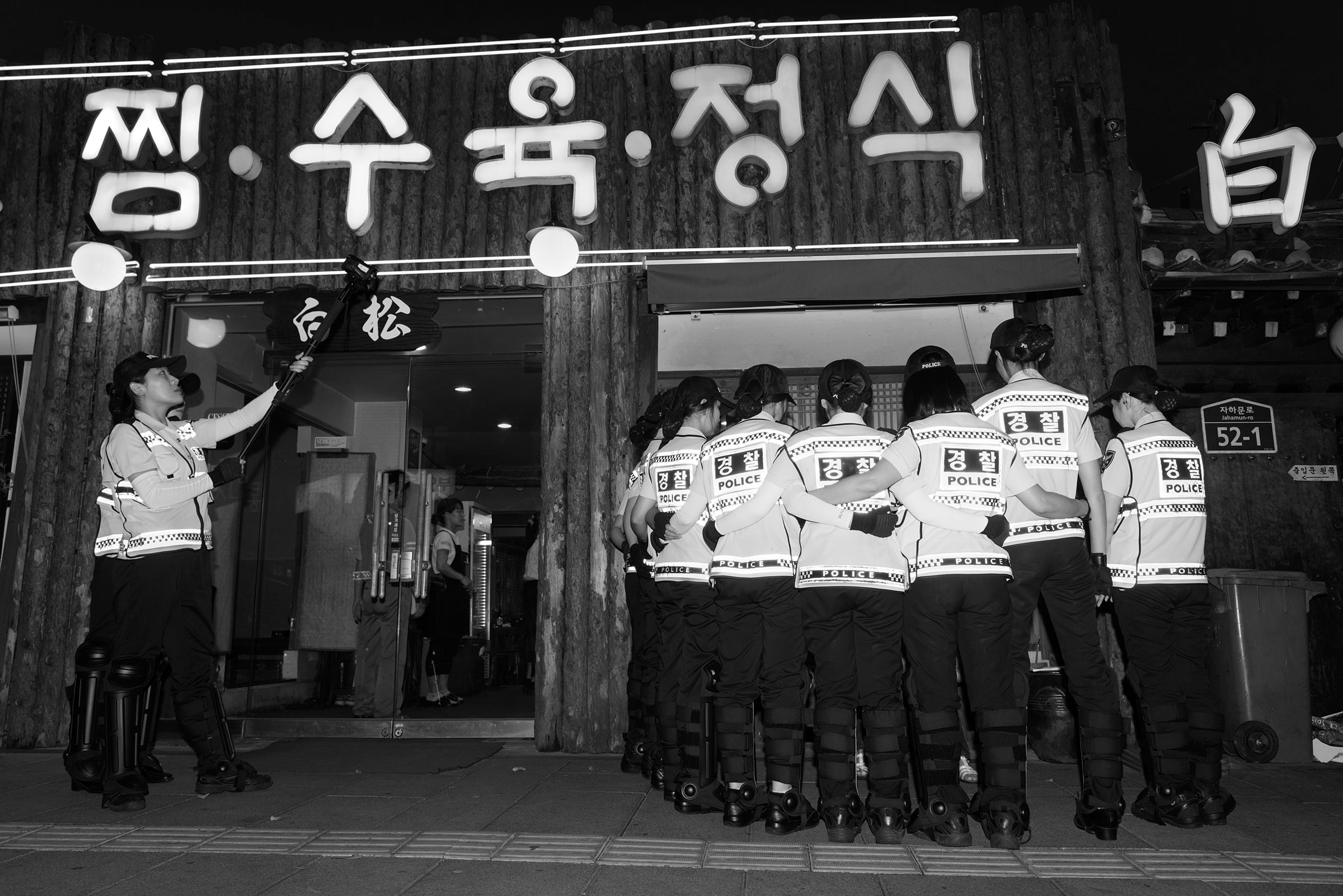 김희진 그럼 일상의 예능화는요? 청운동에서 세월호 유가족들을 포위한 전경들이 행군하면서 춤을 추는 모습을 봤어요. 그 갈등의 현장이 버라이어티쇼의 한 장면이라 여기는지, 그 속에서 하이파이브하는데 그들의 눈은 초점없이 쾡한 상태였어요. 상황은 70년대인데 행동은 경찰 코스프레하는 연애인 지망생 같았다고나 할까요.