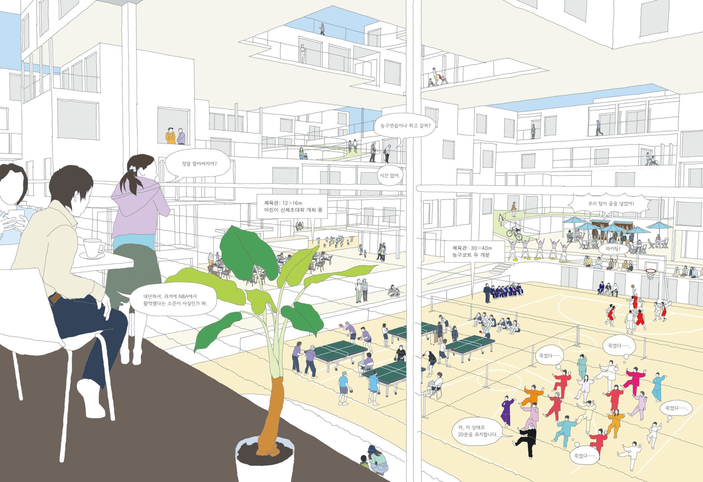 야마모토 리켄 <시노노메 공동주택>은 일본이라서 가능했다고 생각하지 않아요. 공단 측에서는 우리들의 제안이 혁신적이었기에, 주민들에게 받아들여지지 않을까? 걱정했고요. 오히려 제가 한국에서 설계한 <판교 하우징> 프로젝트, <강남 하우징> 프로젝트의 경우가 시노노메 보다 훨씬 혁신적이라고 봅니다.3 한국이 일본보다 새로운 주거환경에 대한 의식이 강하다고 생각합니다.