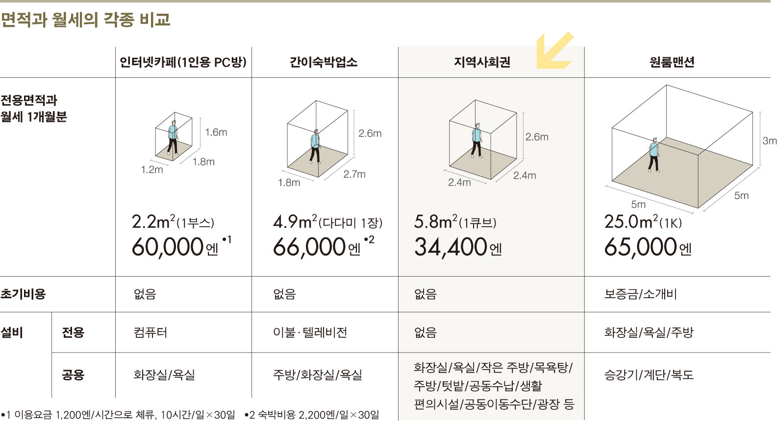 면적과 월세의 각종 비교 / 자료 제공: 안그라픽스, Ⓒ사에키 료타