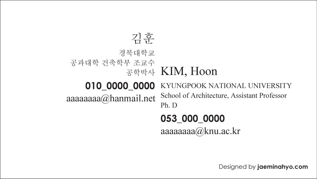 건축가라 자처하며 여러 해를 보냈지만, 아직 의뢰가 많지 않아 시간이 남을 때가 있다. 이런저런 것들을 궁리하고 디자인하는 것을 좋아해서 가구나 명함과 같은, 건축설계가 아닌 다른 분야의 디자인을 기웃거리기도 한다. 그중에서도 특히 명함 디자인의 경우는 ‘개인 명함 캠페인’이라는 이름으로, 사회적인 정체성이 아닌 스스로가 부여한 개인의 정체성을 건축가와 의뢰인이 함께 탐색한다는 명분을 겸하고 있다. 영문명이나 직장명 등을 표기하는 관습 하나하나를 의심하면서 반드시 드러내고 싶은 것들만을 골라낸다든지, 여백의 개념에 구애받지 않고 지면 전체를 활용하여 정보를 배열한다든지, 명함의 앞 뒷면을 두 개의 분리된 평면이 아닌 서로 간섭하고 관통하는 두 공간의 경계로 해석한다든지, 글자가 의미가 아닌 형상으로 드러나는 순간에 주목한다는 것 등이 내가 세운 나름의 명함 디자인 방법론이다. 이런 과정에서 건축가로서의 기질이나 스타일이 은연중에 배어 나오길 기대하는 것이다. 그러면서 늘 의식하는 것은, ‘그래픽 디자이너가 아닌 건축가로서 명함을 디자인한다는 것은 어떤 의미가 있을까?’ 라는 질문이다. 이런 물음에 기대하는 답변이 나올 때도 가끔은 있다. “이유를 콕 짚어 말하기 힘들지만, 왠지 건축가가 디자인한 명함답다”라는 식의 반응으로 말이다.