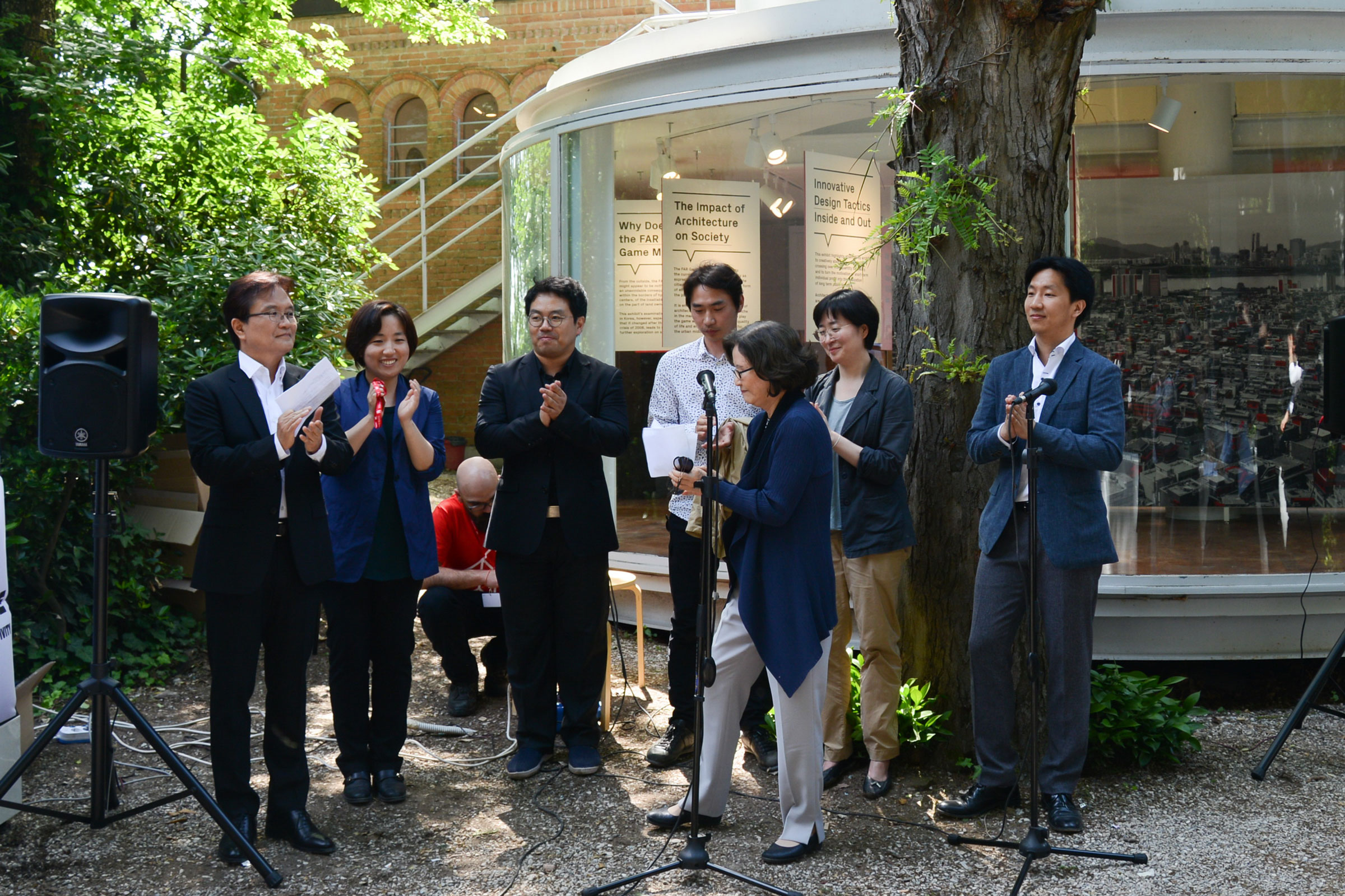 이번 베니스비엔날레 건축전의 한국관 큐레이터는 김성홍 예술감독을 비롯해 5명의 공동 큐레이터로 구성됐다. 이들은 수평적 구조 속에서 《용적률 게임: 창의성을 촉발하는 제약》(이하 ‘용적률 게임’)이라는 전시 타이틀을 통해 한국 건축의 주요 생성 원리를 탐구했다. 총감독 알레한드로 아라베나가 ‘전선에서 알리다(Reporting from the Front)’란 주제를 제시함으로써 건축가의 사회적 실천을 보고자 했다면, ‘용적률 게임’은 시장원리에 충실한 한국 건축의 단면을 드러낸다. 한국관 공동 큐레이터들은 무엇을 말하고 싶었는지 현장 인터뷰를 통해 들어봤다.1